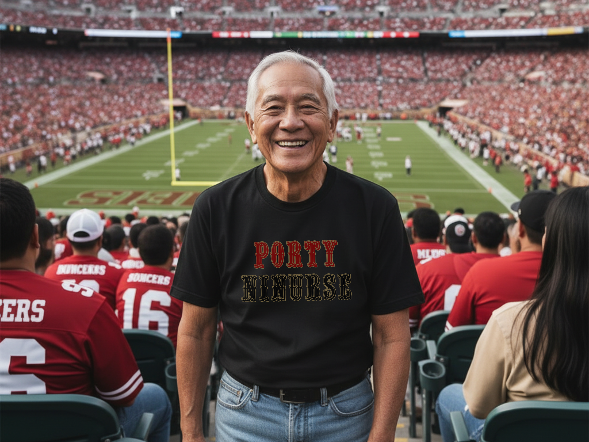 For the faithful lolos, lolas, titos, and titas who never miss a game and proudly cheer “Go Porty Ninurse!" This one's for you! Celebrate Filipino American Heritage Month, family pride, and 49er fandom in style, laughter, and Bay Area pride! 🇵🇭