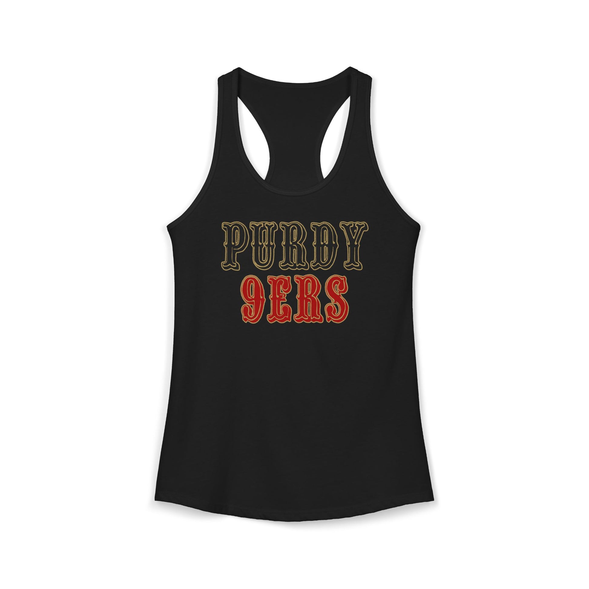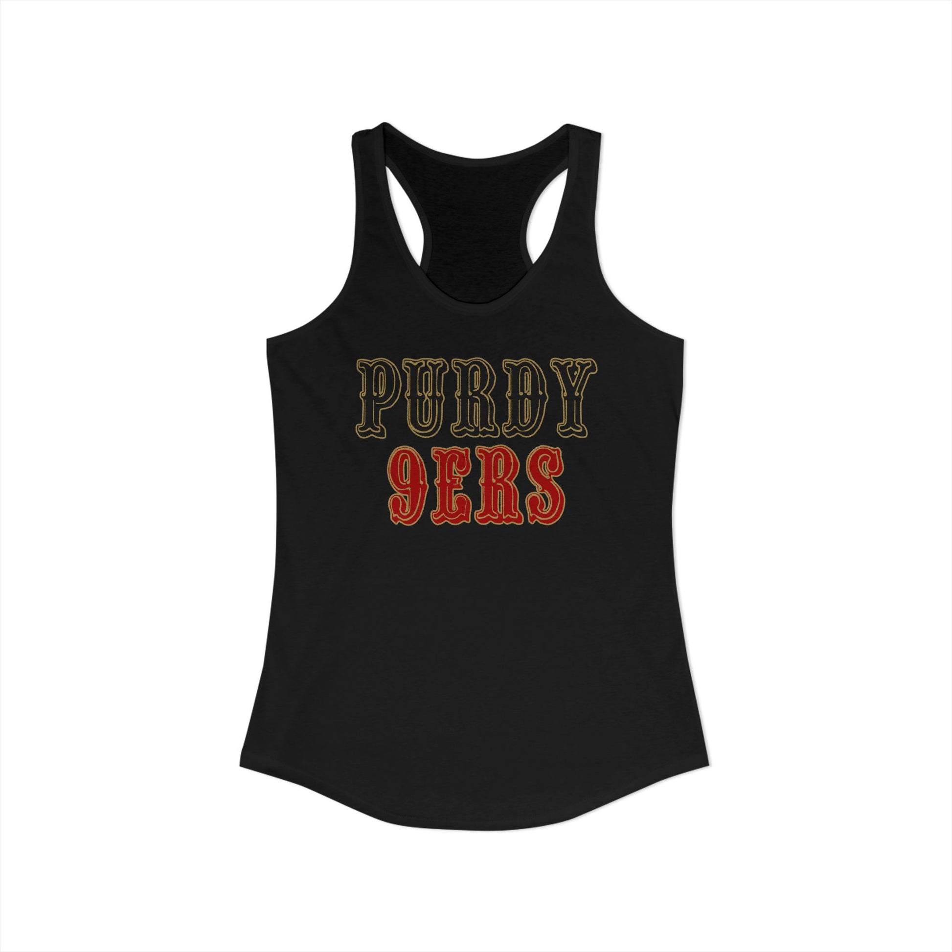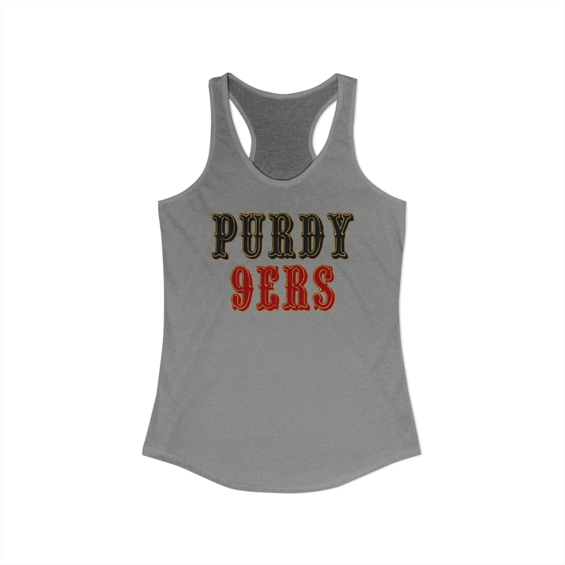 Gear up and show your support for your quarterback with this "Purdy 9ers" Women's Ideal Racerback Tank by Next Level, model 1533. This tank is not just a statement; it's a comfortable blend of 60% cotton and 40% polyester, making it your ideal companion for game days or any day! Featuring a classic fit and a sporty scooped neckline, it keeps you stylish while you cheer on your favorite team. No scratchy tags here – we've added a tear-away label for ultimate comfort. Elevate your game day look with the Women's Ideal Racerback Tank – because being a faithful fan has never been this stylish!